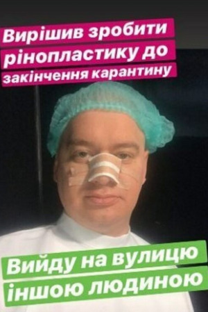 Причиной распространения слухов стало свежее фото юмориста в его Инстаграм-сториз. На нем Кошевой изображен в медицинской шапочке, а его нос закрыт бинтом и пластырями. "Решил сделать ринопластику до окончания карантина. Выйду на улицу другим человеком", — написал он в своем посте.