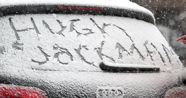 Когда владелец увидел на своей машине надпись "Хью Джекман", он не смог сдержать улыбки. Видимо, снежные послания ему оставляют не очень часто.