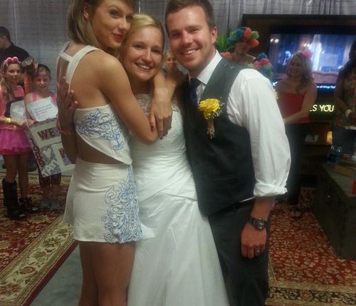 Молодожены Крис и Кэти, живущие в Филадельфии, нашли способ сделать свою свадьбу еще более незабываемой. Поклонники Тейлор Свифт решили отпраздновать это торжество прямо на концерте любимой певицы. Разумеется, звезда не могла не поздравить счастливых влюбленных лично.