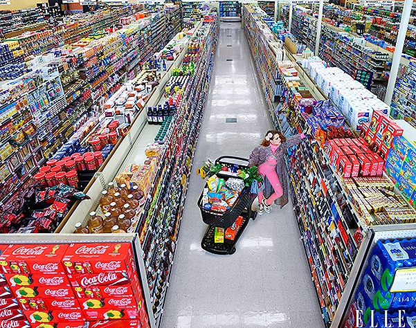 Декорациями для съемки послужил супермаркет в Калифорнии - актриса позировала на фоне прилавков с овощами и консервами.