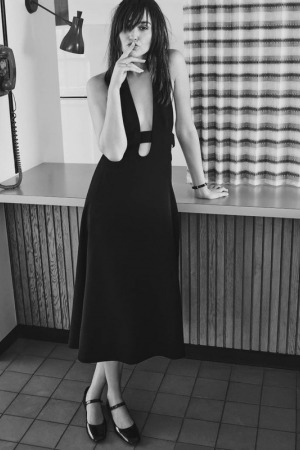 Для съемки актриса примерила дерзкую челку. Однако на самом деле горячо становится от снимков, где Галь позирует в соблазнительных трусиках, платье с глубоким декольте и мини.