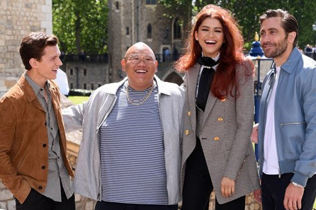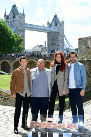 На фотоколле в преддверии премьеры собрались Том Холланд, Джейк Джилленхол, Джейкоб Баталон и Зендея, на радость фанатам позировавшие на фоне лондонского Тауэра с режиссером Джоном Уоттсом и солдатами английской королевской гвардии, которые этот самый Тауэр охраняют.