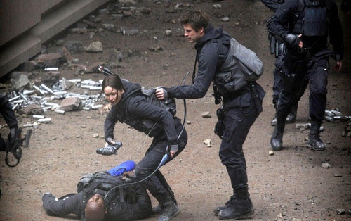 Мы продолжаем пристально следить за съемками фильма "Голодные игры: Сойка-пересмешница". Дженнифер Лоуренс, Лиам Хемсворт, Джош Хатчерсон и Натали Дормер вновь погрузились в мрачный мир Панема.