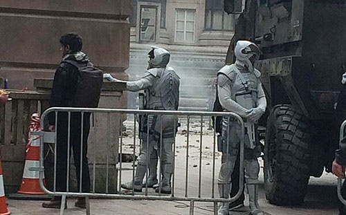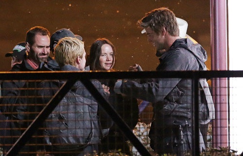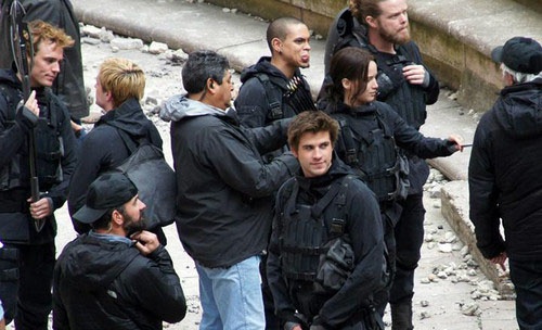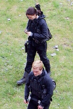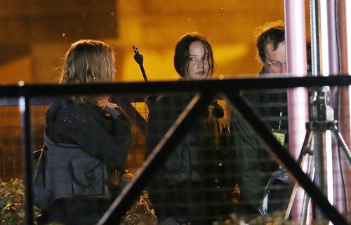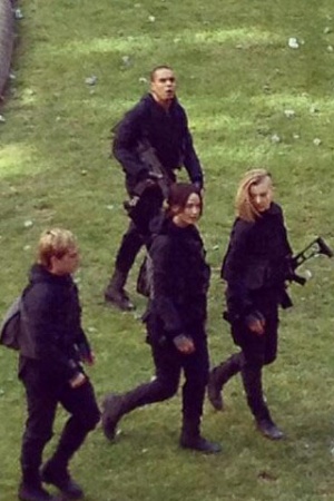 Дженнифер Лоуренс вернулась к роли Китнисс Эвердин. Актриса, Лиам Хемсворт, Джош Хатчерсон, Натали Дормер и многие другие актеры, занятые в фильме "Голодные игры: Сойка-пересмешница" были замечены на съемках картины в районе Парижа Нуази-ле-Гран, где был воссоздан постапокалиптический Панем.
