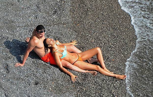 Влюбленная парочка была замечена на побережье итальянского городка Амальфи.