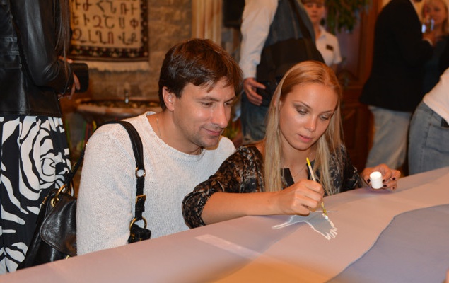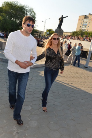 На фестиваль Татьяна Арнтгольц и Григорий Антипенко приехали со своим спектаклем "Двое на качелях" и пробыли в Благовещенске с 6-го по 10-е сентября. Название фестиваля попало в точку – не заметить стрел Амура, поразивших актеров, было невозможно. При этом актеры никак не комментируют статус своих отношений. Но каждую минуту пара проводила вместе. Можно было заметить некое смятение Григория на красной дорожке, когда все внимание было направлено на них с Татьяной, он всячески пытался уклониться от объективов. Арнтгольц, как могла, ободряла партнера, и сама брала его за руку, нежно шепча что-то на ухо. Заметно, что в этой паре она явный лидер. На вечернем банкете по случаю открытия пара уединилась в самом дальнем уголке и наслаждалась общением друг с другом. Перед этим Татьяна и Григорий поучаствовали в конкурсе и совместно нарисовали на ватмане символ фестиваля – летящего амурского журавля. Григорий при этом держал Танину сумку и тихонечко что-то ей подсказывал.