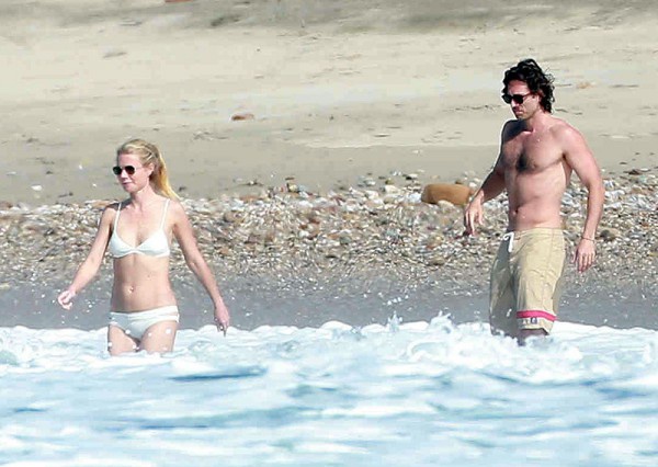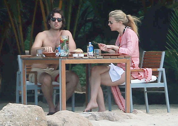 Похоже, влюбленные опять возобновили свои отношения и отправились вместе с детьми Пэлтроу – 11-летней Эппл и 9-летним Мозесом отдыхать в теплые края. Актриса дефилировала на пляже в белом купальнике и похвасталась стройной подтянутой фигурой. Папарацци запечталели парочку во время купания в море и романтического обеда прямо на побережье. Гвинет и Брэд выглядели счастливыми.