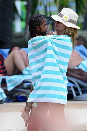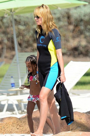 Мама четырех детей не скрывала изящные формы под пляжными нарядами, разве что прикрывала плечи от пекущего солнца. К слову, рядом с Хайди все время находилась ее мама – такая же стройная и прекрасная, как и ее звездная дочь.