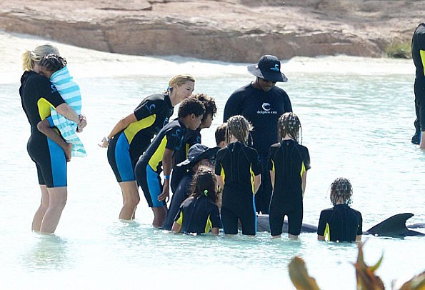 Женщины много времени уделяли четверым детям модели. Малыши много загорали и любовались дельфинами, которые живут в естественных условиях рядом с отелем, где поселилос семейство, и с удовольствием общаются с гостями курорта.
