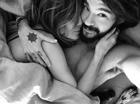 Теперь же ведущая выложила интимное фото с женихом. Влюбленные лежат в кровати. Хайди нежно прижалась к бойфренду, который приобнял возлюбленную. А из-под одеяла торчит нос и лапа домашнего любимца пары. Кадр уж очень напоминает семейное фото.