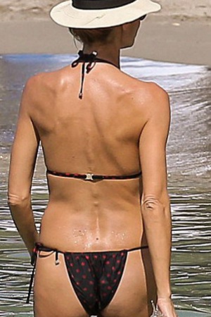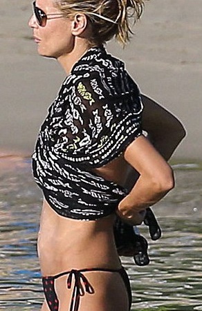 Хайди загорала в черном бикини, которое демонстрировало ее фигуру, что в последнее время начала терять свою красивую форму.