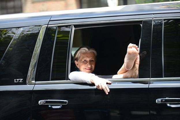 69-летняя актриса прокатилась по центру Нью-Йорка, высунув ноги из окна автомобиля. Судя по ее довольному лицу, она была счастлива и ни капли не смущалась, что ее фотографировали папарацци.