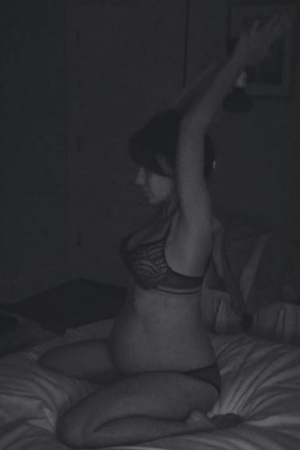 Женщина опубликовала в Instagram видео, в котором показала, как качает трицепс сидя на кровати в нижнем белье, оголив большой округлившийся живот.
