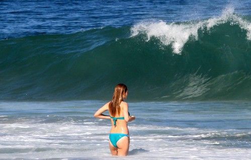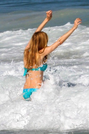 43-летняя актриса демонстрировала прекрасную форму на солнечном бразильском пляже и резвилась в волнах теплого моря.