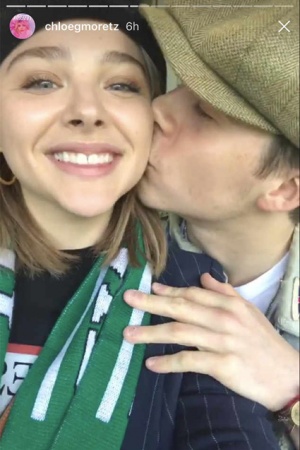 Хлоя Морец и Бруклин Бекхэм больше не скрывают своих чувств друг к другу. 20-летняя актриса и 18-летний фотограф провели время на футбольном матче в Дублине (Ирландия) в компании двух братьев девушки Тревора и Колина. Хлоя опубликовала в своей истории в Instagram, где Бруклин нежно целует ее в щеку.