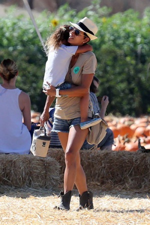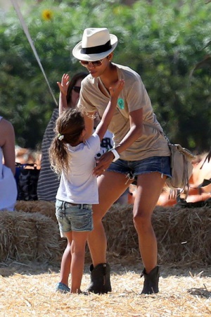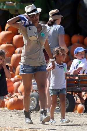 Холли Берри сводила дочь на традиционный осенний фестиваль тыкв. Холли держала малышку за руку, а когда Нала уставала то на руках.