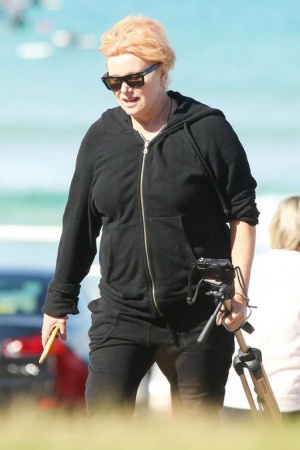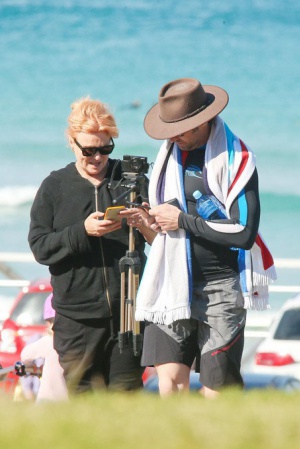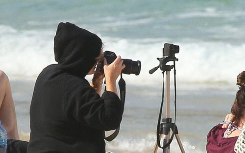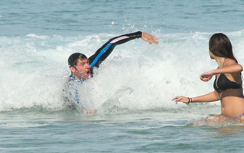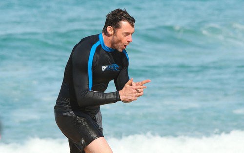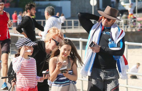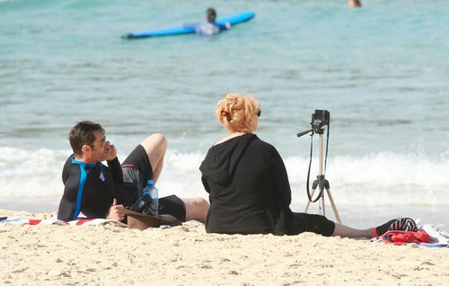 Хью и 10-летняя Ава купались в океане, несмотря на прохладную воду, а вот Деборра-Ли предпочла ждать их на берегу и снимать происходящее на камеру.