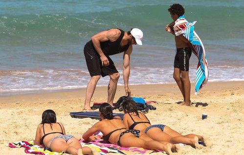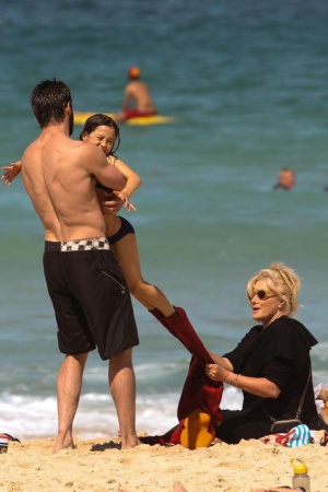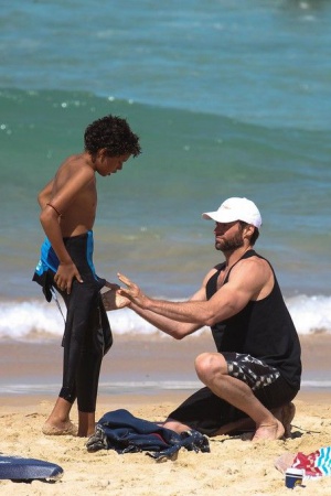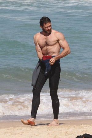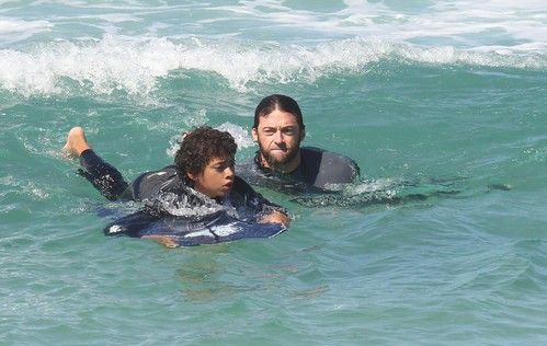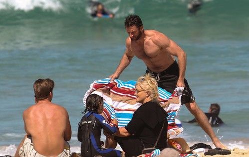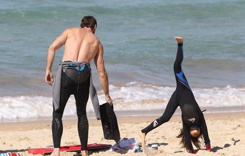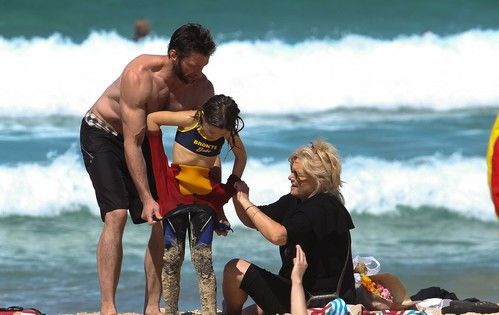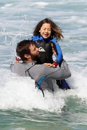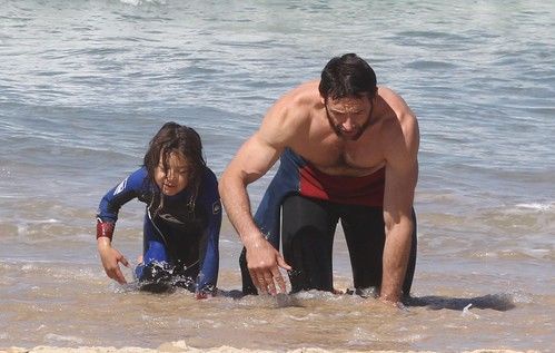 Хью Джекман давно известен как примерный семьянин. Он провел выходные на пляже в Сиднее с женой, сыном и дочерью. Хью занимался серфингом и играл с детьми.
