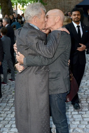 Они дружат на протяжении многих-многих лет, но до сих пор не позволяли себе выражать свои чувства настолько открыто на публике. И вот, на премьере нового фильма о знаменитом британском сыщике Шерлоке Холмсе сэр Иэн МакКеллен и Патрик Стюарт отважились на нечто необычное. На Лондонскую премьеру "Мистера Холмса", где МакКеллен исполняет главную роль, Стюарт пришел, чтобы поддержать своего товарища. Едва увидев сэра Иэн, Патрик к нему подошел и слился с другом в крепком поцелуе и объятии. Публика, которая собралась на этом мероприятии, была удивлена, а в толпе сразу пошли разговоры о том, что Иэн и Патрик показали, как должны целоваться настоящие друзья.