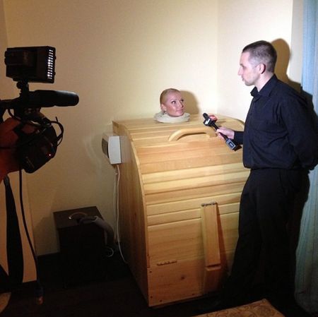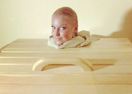 На сей раз скандальная светская львица дала интервью, сидя прямо в банной фитобочке с травами. За это интернет-пользователи моментально прозвали Анастасию Волочкову "говорящей головой", ведь из деревянной конструкции действительно видно было только лицо танцовщицы.