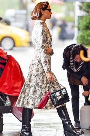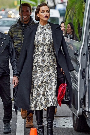 Папарацци удалось сделать несколько кадров со съемочной площадки. На фото Ирина Шейк удивила стильным ретро-образом.