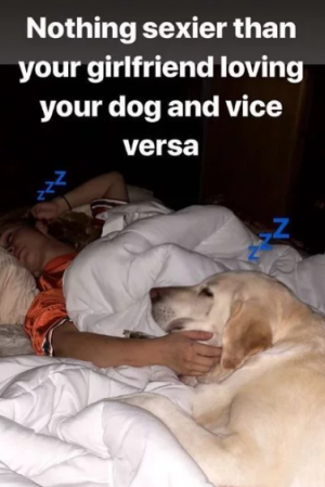 "Нет ничего сексуальнее, чем то, когда твоя девушка любит твоего пса, а он – ее", – написал актер.
