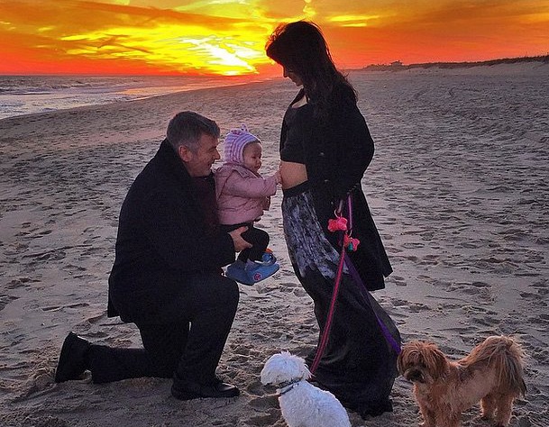 В новогоднюю ночь 30-летняя Хилария опубликовала в своем Instagram трогательный семейный снимок, сделанный на берегу моря на фоне заката. На фото она позирует со своим 56-летним супругом и маленькой дочкой Кармен: девочка, которую держит на руках папа, гладит округлившийся животик своей беременной мамы.