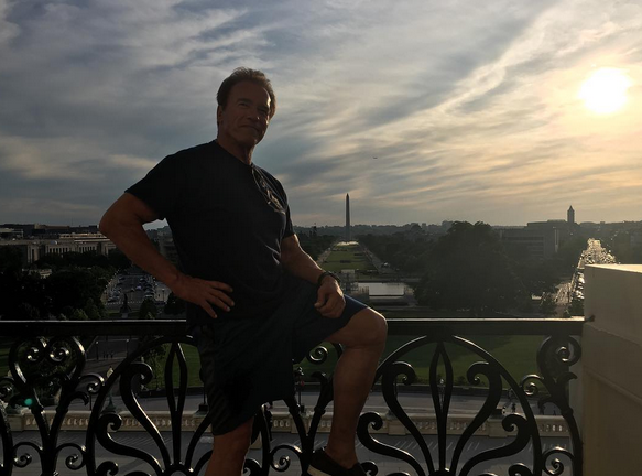 Тут вам пожалуйста Арни и на лодке военно-морского флота, и проезжающий на велосипеде мимо Белого дома, и много-много чего еще. И кстати, актер не знает, как удалять неудачные снэпы, поэтому выкладывает абсолютно все.