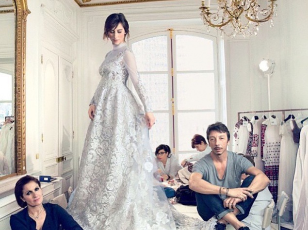 Креативные дизайнеры модного дома Мария Грация Кюри и Пьерпаоло Пиччоли рассказали, что пошили платье всего за три дня, хотя на такой заказ обычно уходит около шести месяцев. Кутюрное свадебное платье было выполнено в ретро-эстетике из серебряного кружева, а не из более традиционных оттенков белого, шампани или слоновой кости. Фасон платья был специально продуман так, чтобы подчеркнуть "интересное" положение невесты.