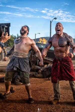 "Съемки спин-оффа Форсажа о Хоббсе и Шоу переместились на остров Самоа, где Дуэйн Джонсон дал волю своим полинезийским корням", - сказано в комментарии к снимкам.