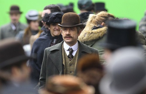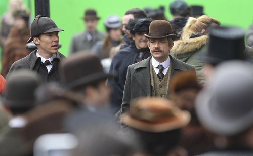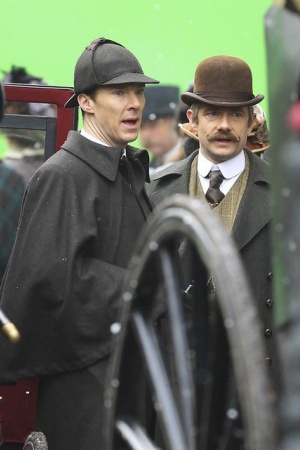 Бенедикт Камбербэтч и Мартин Фриман были замечены в Лондоне на съемках рождественского выпуска, действие которого развернется в викторианскую эпоху.