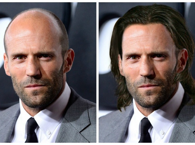 Некоторых лысых голливудских актеров очень трудно представить с другой прической. А что будет, если на их головах появится волосы? Будет странно и даже смешно.