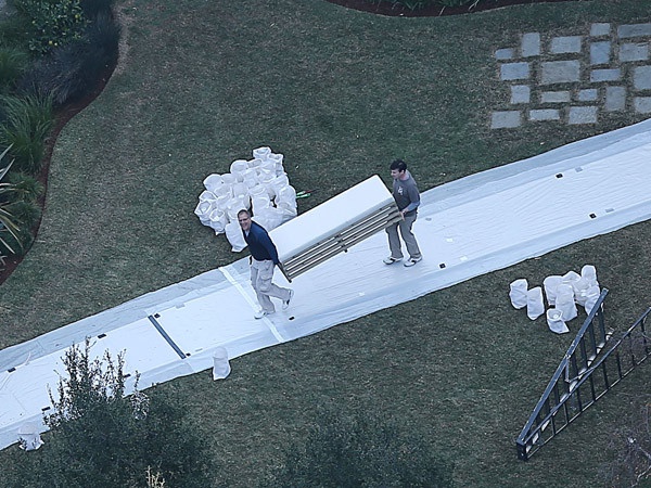 Кэмерон Диаз свое бракосочетание скрывала до последнего. Но журналистов не проведешь! Сегодня в общем доступе в сети появились снимки папарацци с долгожданного события, а точнее, за несколько часов до его начала. На фото можно увидеть место, где проходило торжество, и даже гостей. А вот кадров невесты и жениха пока нет (они, наверное, давно проданы одному из западных изданий).
