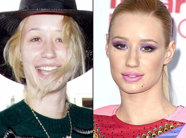 Предлагаем сравнить, как некоторые красотки выглядят с макияжем и без него.