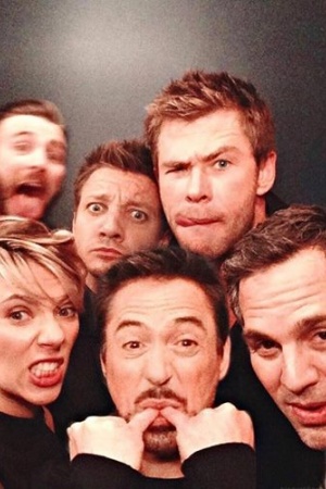 На фотографии запечатлены участники команды Мстители Крис Хемсворт, Марк Руффало, Скарлетт Йоханссон, Джереми Реннер и сам Эванс, "ворвавшийся" в кадр в последний момент.