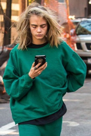 Модель Кара Делевинь удивила своим внешним видом, когда вышла в магазин в Нью-Йорке. Девушка попала в объективы папарацци без макияжа и с растрепанными волосами.