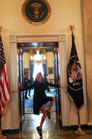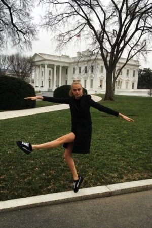 Снимки в Белом доме, которые опубликовала после посещения Кара Делевинь, удивили и позабавили поклонников. На них Кара то и дело кривляется, дурачится и позирует в довольно смешных позах. Что ж, судя фотографиям Делевинь, политика - это не так уж и скучно.