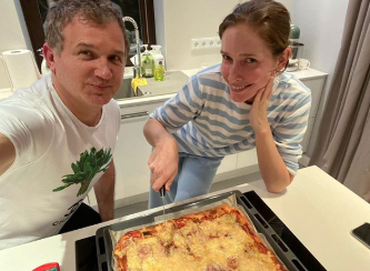 Горбунов поделился похожим фото, на котором показал итальянское блюдо, которое разрезает его жена.
