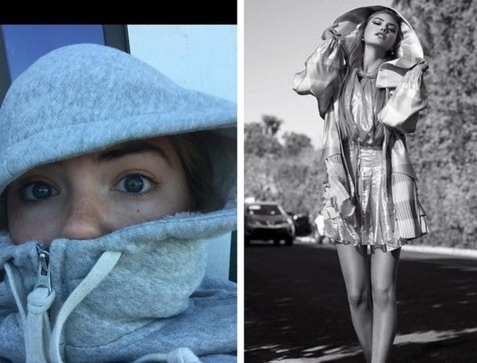 Модель создала несколько коллажей из своих снимков. Часть – это ее фото из реальной жизни, а часть – профессиональные работы именитых фотографов. " Высокая мода и реальность", - озаглавила Аптон свою подборку.