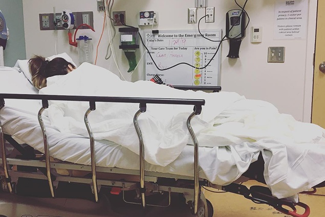 Разрыв кисты яичника доставляет мне много боли, а морфин заставляет плакать. Безумно благодарна всем, кто за мной присматривает — написала Кейт, сопроводив этот постой парой снимков, сделанных прямо на больничной койке.