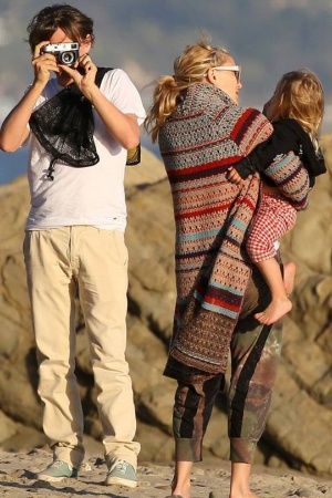Пара была замечена со своим двухлетним сыном во время прогулки по побережью Малибу. Они с воодушевлением друг друга фотографировали и со стороны выглядели вполне счастливой семьей.
