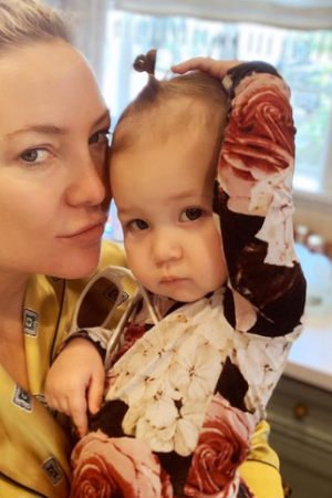 Сейчас Кейт воспитывает двух дочерей и сына, которых часто показывает в своем микроблоге. Недавно ей удалось сделать снимок с годовалой дочкой Роуз. На фото звездная мама позирует в желтом халате и с хвостиком на голове. Маленькая Роуз одета в платье с цветочным принтом. Волосы девочки собраны в красивую прическу. Мама и дочь мыло улыбаются.