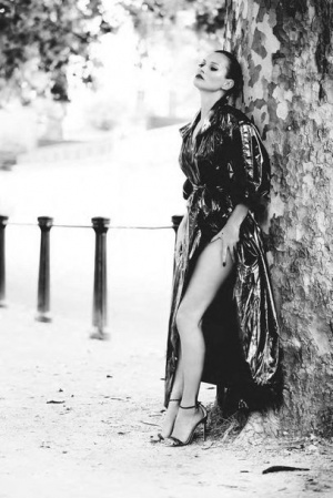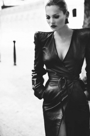 В частности, Мосс позировала в вечерних платьях с глубоким декольте, акцентировав внимание на сексуальных формах. Супермодель также примерила наряды из матовой и лакированной кожи.