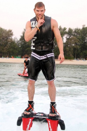 На выходных Келлан Латс играл роль супергероя. Актер показывал трюки с помощью флайборда, отмечая так открытие в Пхукете Nikki Beach Grand Resort.