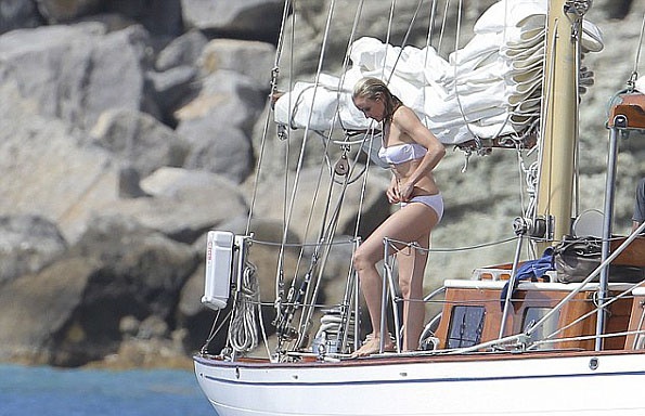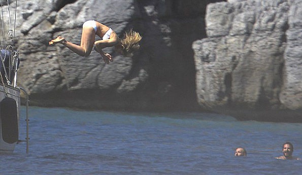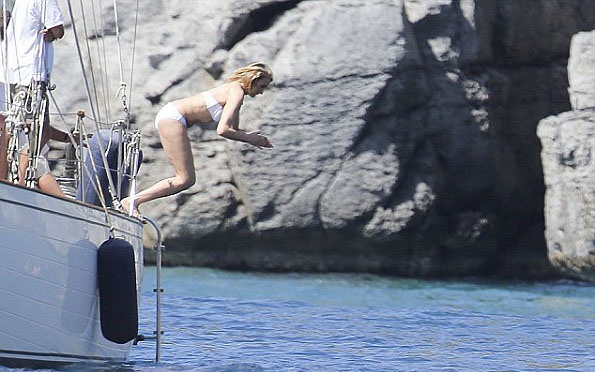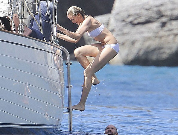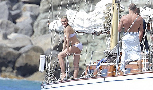 Одетая в белое бикини Диаз беззаботно принимала солнечные ванны, смело ныряла с борта яхты и гордо демонстрировала свою стройную фигуру и длинные ноги.