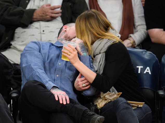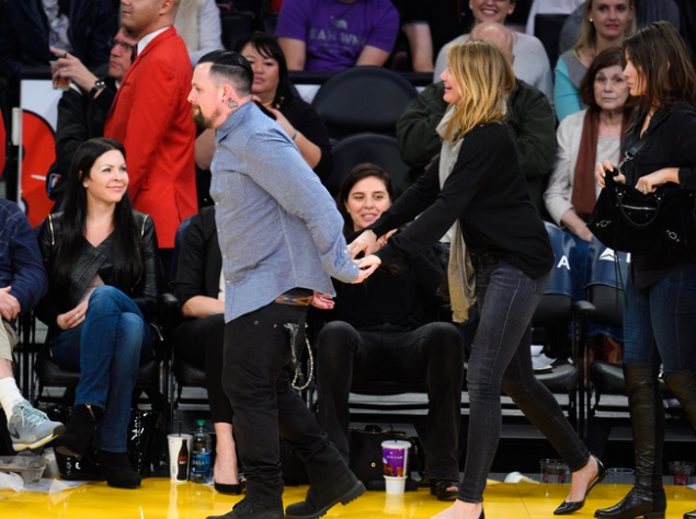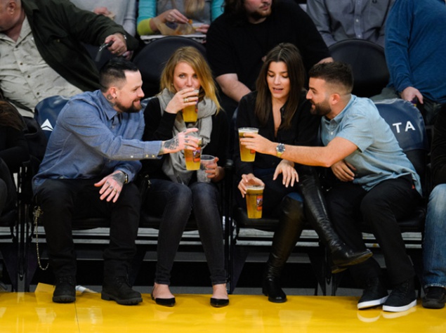 Парочка была замечена на баскетбольном матче в Лос-Анджелесе. Компанию новобрачным составили их друзья.