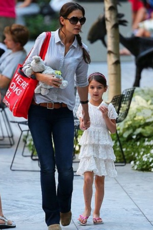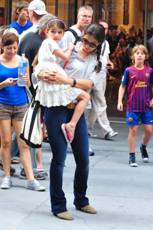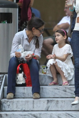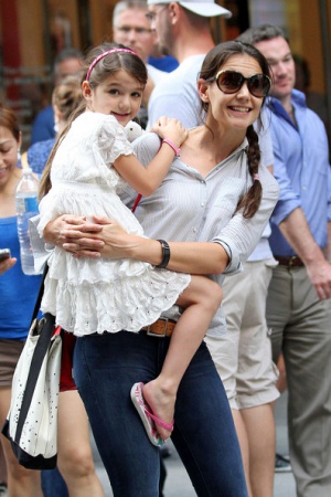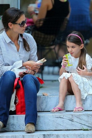 Кэти Холмс воссоединилась с дочкой Сури после того, как папа Том купал ее во флоридском Диснейленде. Мама в Нью-Йорке отвела девочку в музей современного искусства MOMA, на выходе из которого парочка попала под обстрел папарацци и случайных прохожих. Кэти и Сури не растерялись, не помрачнели – наоборот, продолжили улыбаться. Более того, после музея Кэти отвела Сури в уличное кафе, купила тако – а по-нашему шавермы – и присела с малышкой перекусить прямо на ступеньках.