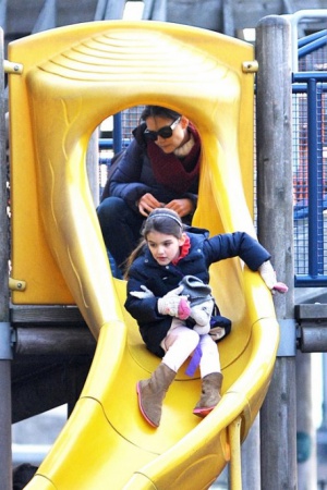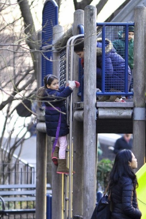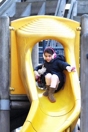 Видимо, в Нью-Йорке – настоящие морозы, убедительные даже для Сури Круз, раз мама Кэти Холмс убедила девочку одеться потеплее. Папарацци поймали девчонок на детской площадке Hudson River Greenway: Сури каталась с горки, а затем выпросила у мамы пачку конфет.