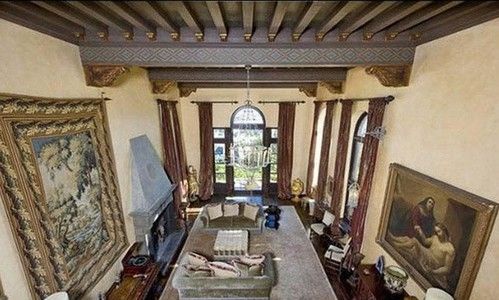 В роскошном особняке имеется просторная гостиная с видом на Голливудские холмы, уютная кухня, семь спален и девять ванных комнат, две комнаты для гостей и помещение для персонала. На территории огромного сада есть бассейн.