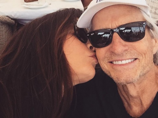 Разница в 25 лет не мешает паре жить вместе весело и счастливо. На своей соцстраничке Кэтрин решила показать поклонникам, как она любит супруга и разместила фото, на котором она нежно целует Дугласа в щечку.